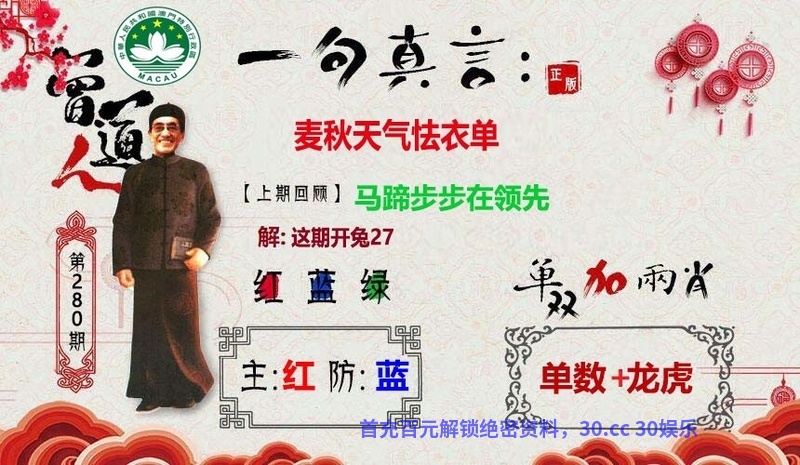 279期【解一句真言】:马蹄步步在领先,领先,解武将生肖蛇牛狗猴马虎